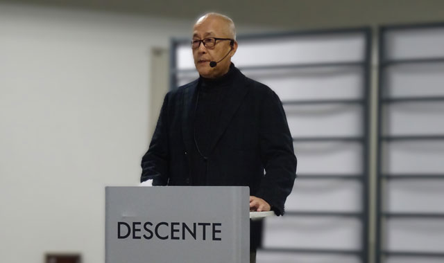 (上)来賓ご挨拶はデサントジャパン㈱スタッフユニット・ユニット長代行の林様