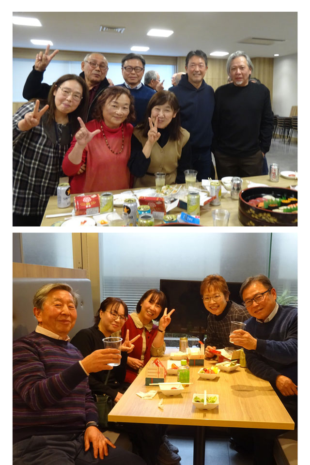 (下右)出雲谷さん写真撮影ありがとうございます。奥田さん総会司会お疲れさまでした。
